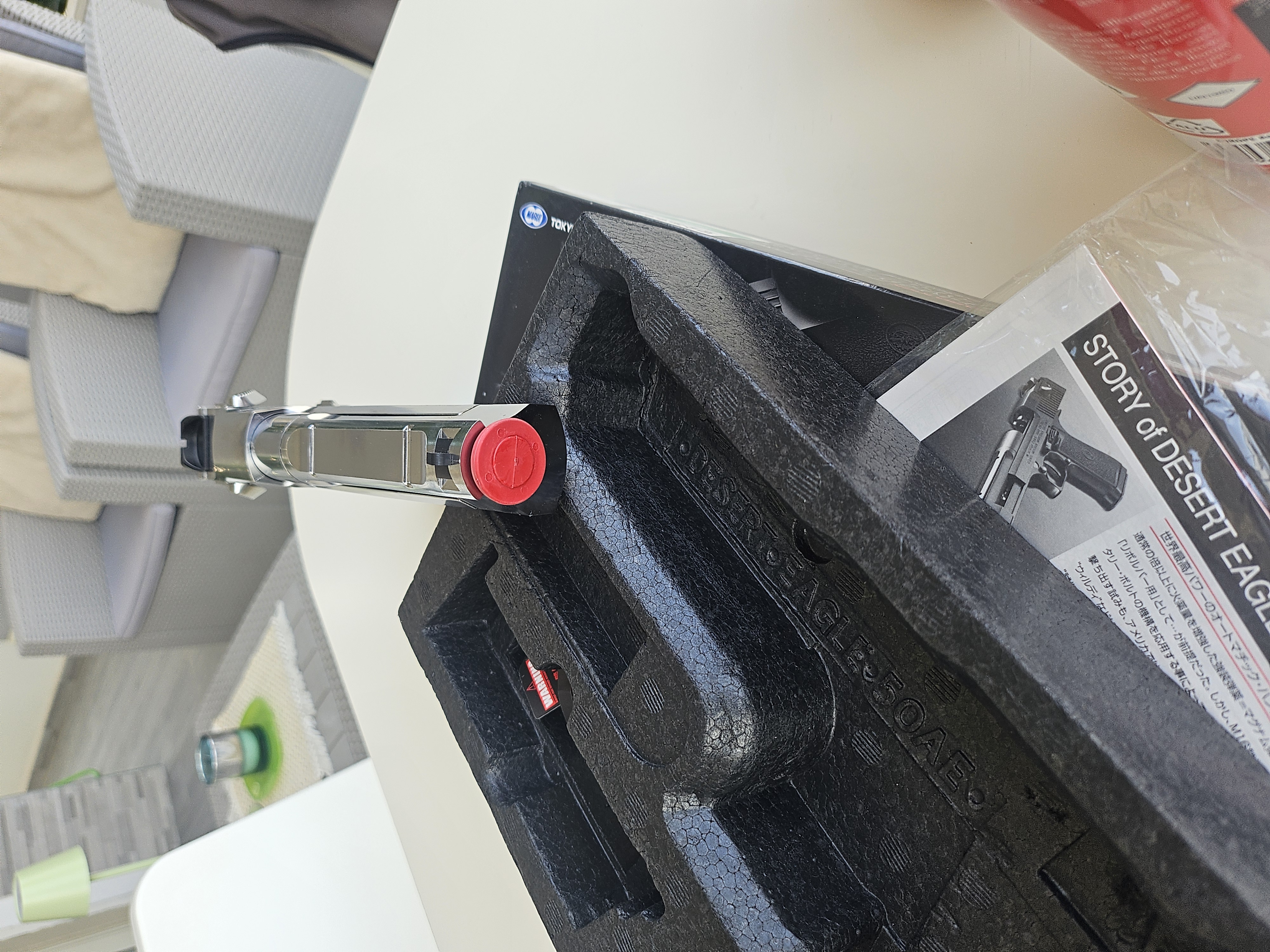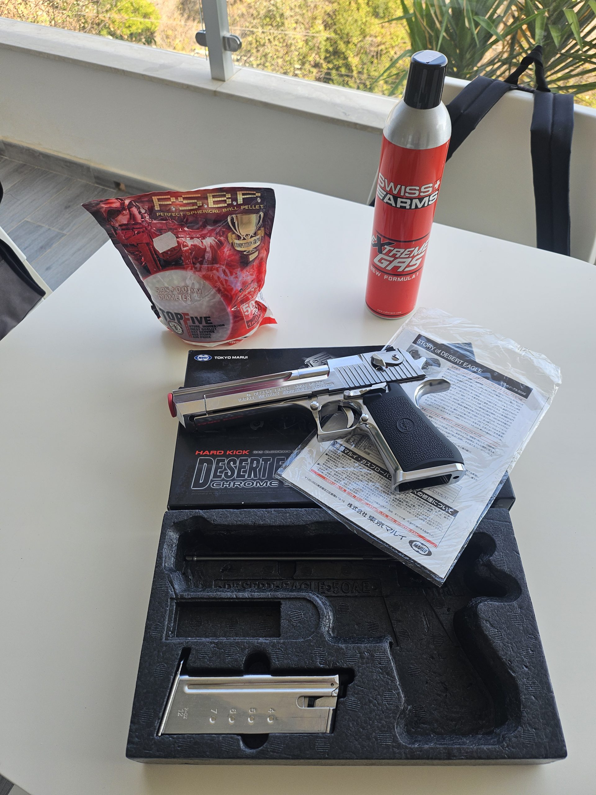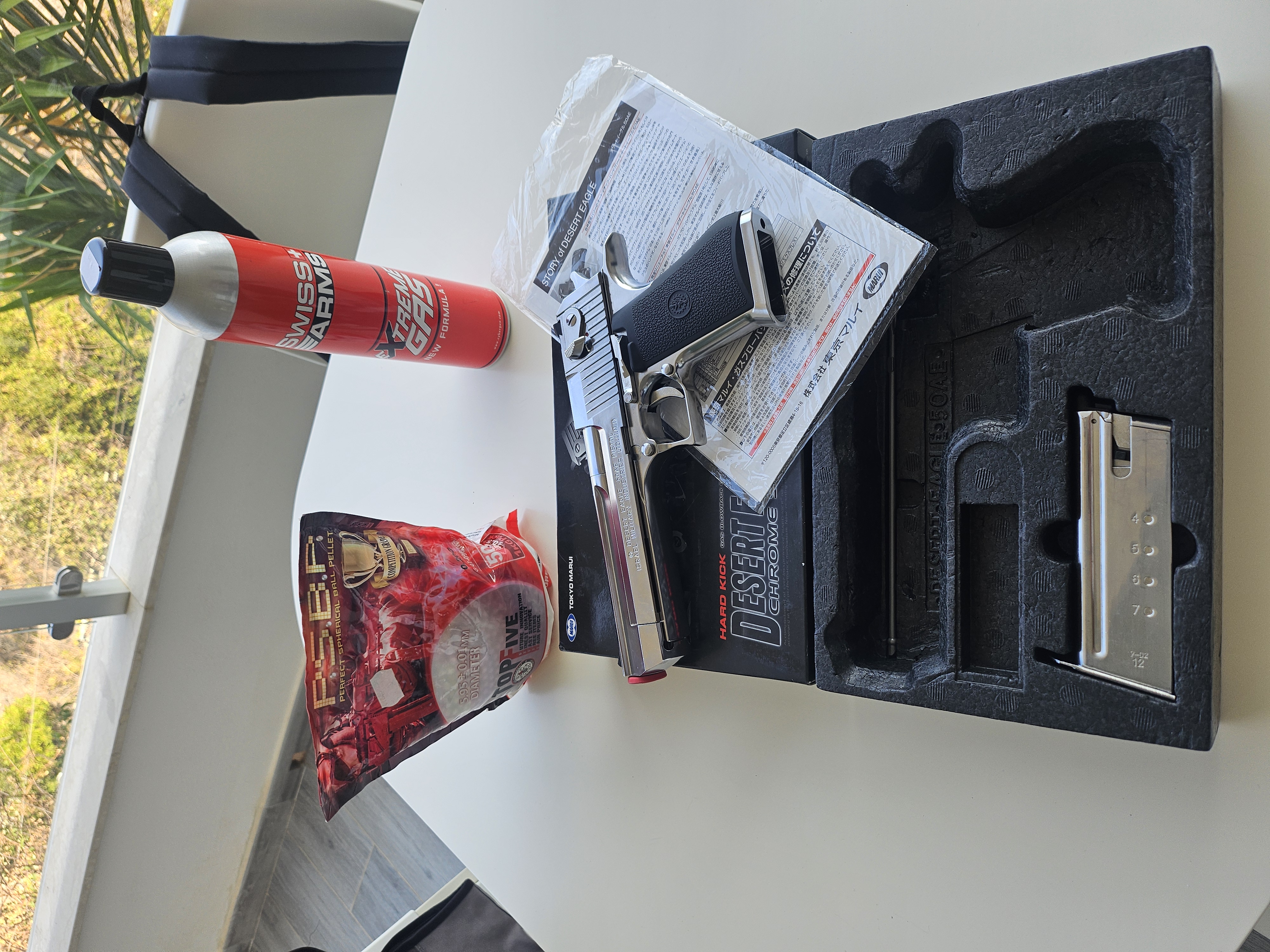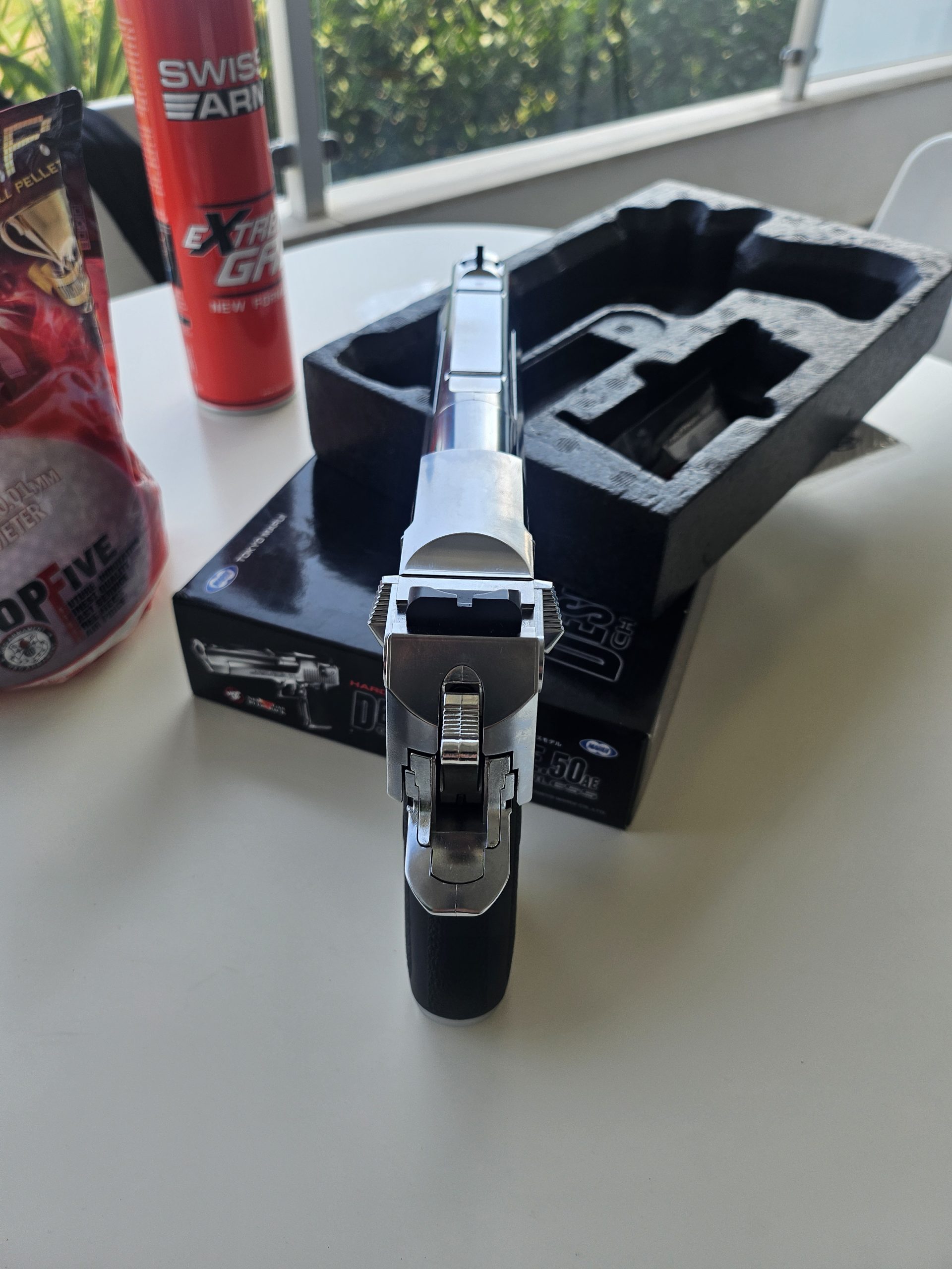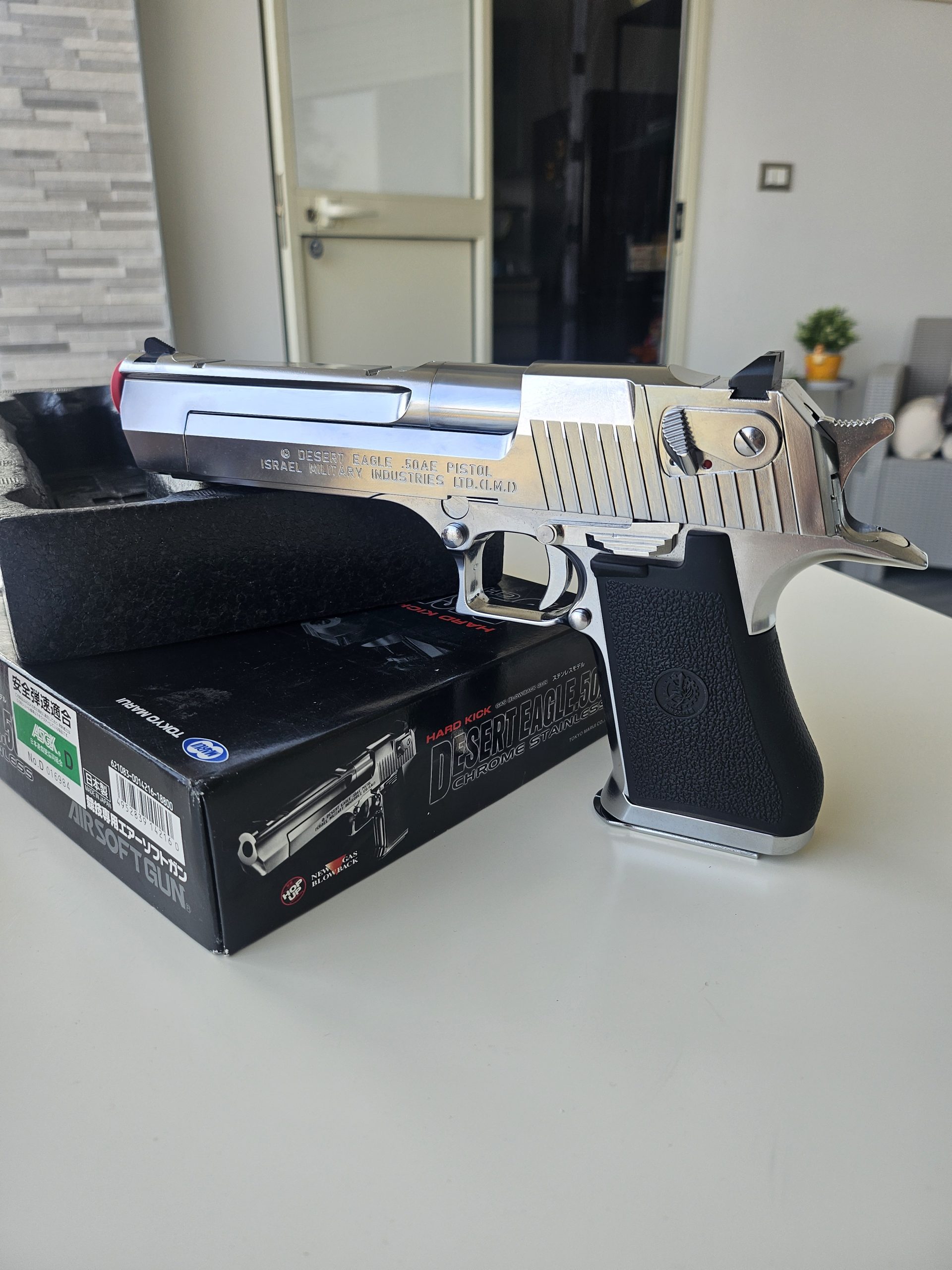 Desert Eagle Tokio Marui cromata, mi è stata regalata, in strepitose condizioni, usata pochissimo e mai uscita, compresa bomboletta gas ancora utilizzabile per qualche ricarica, un pacco di proiettili praticamente pieno.