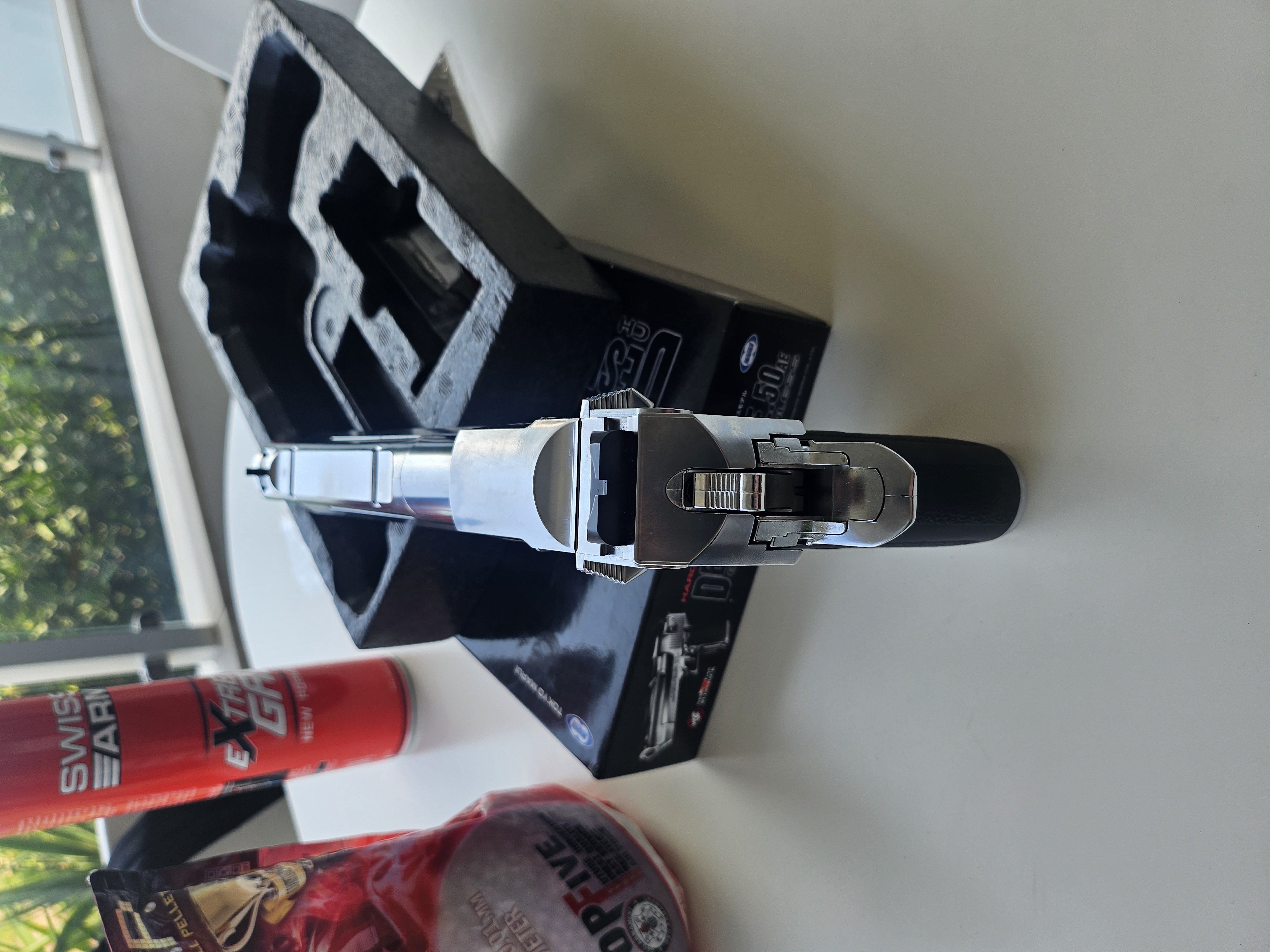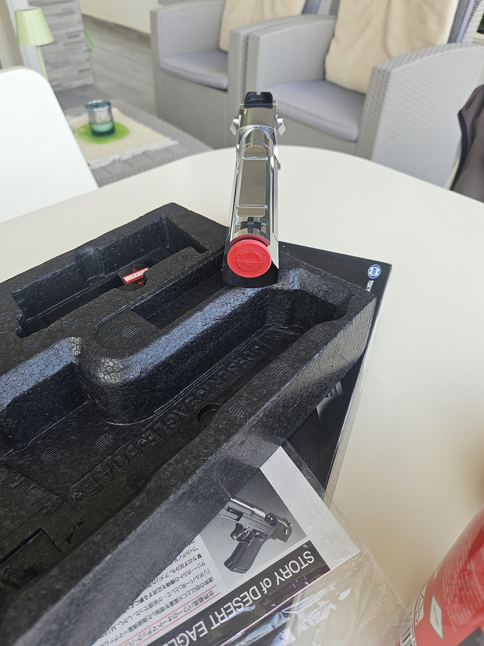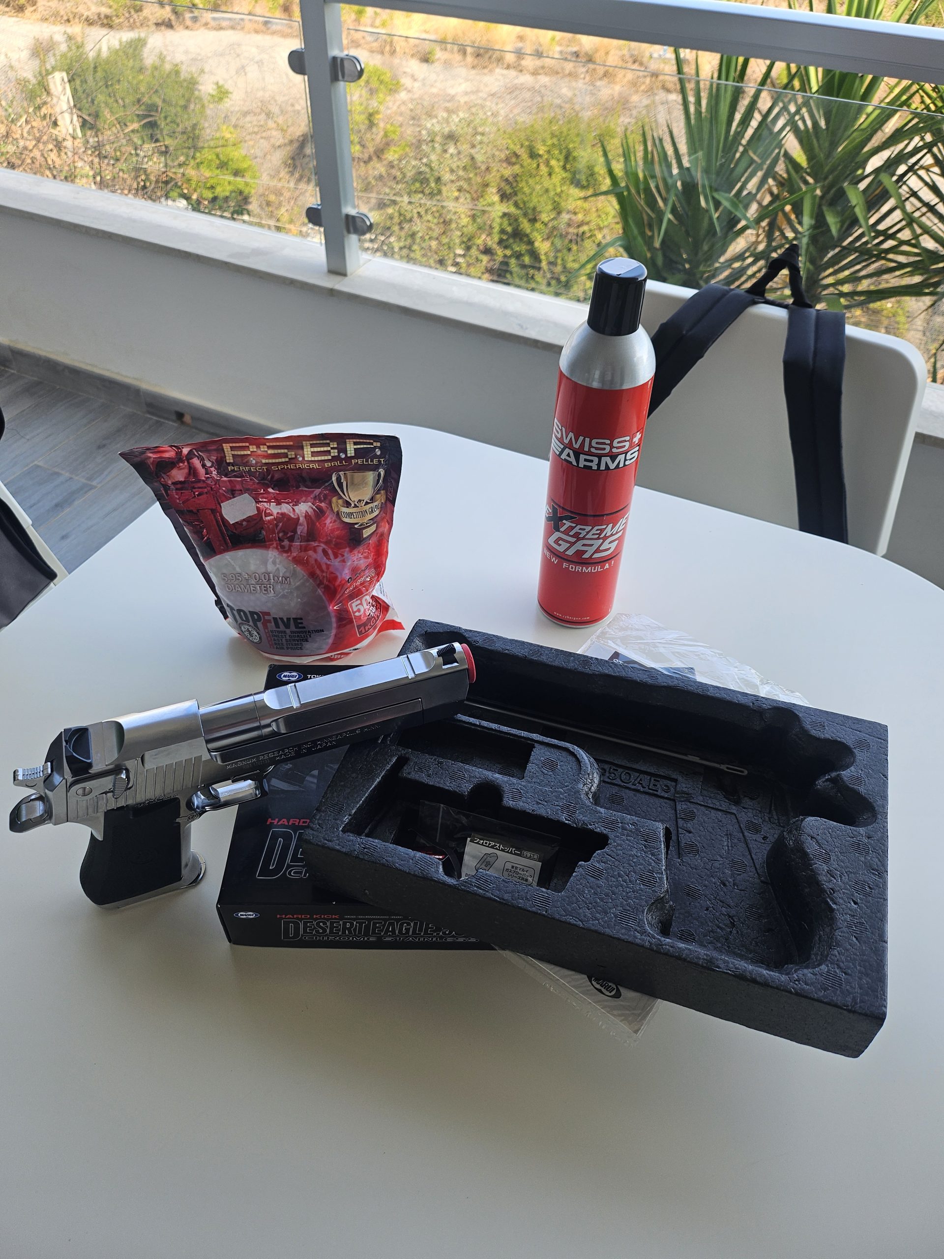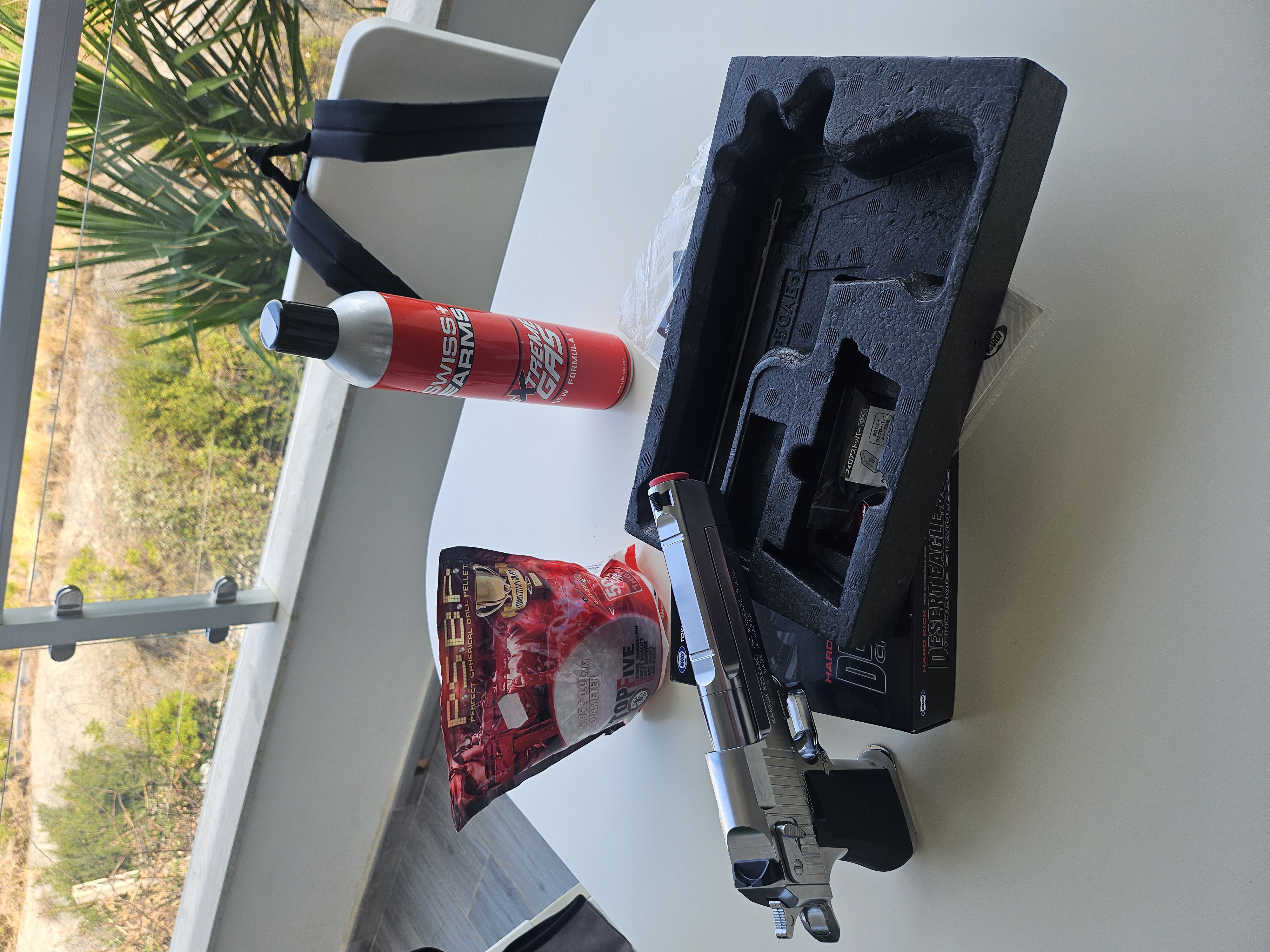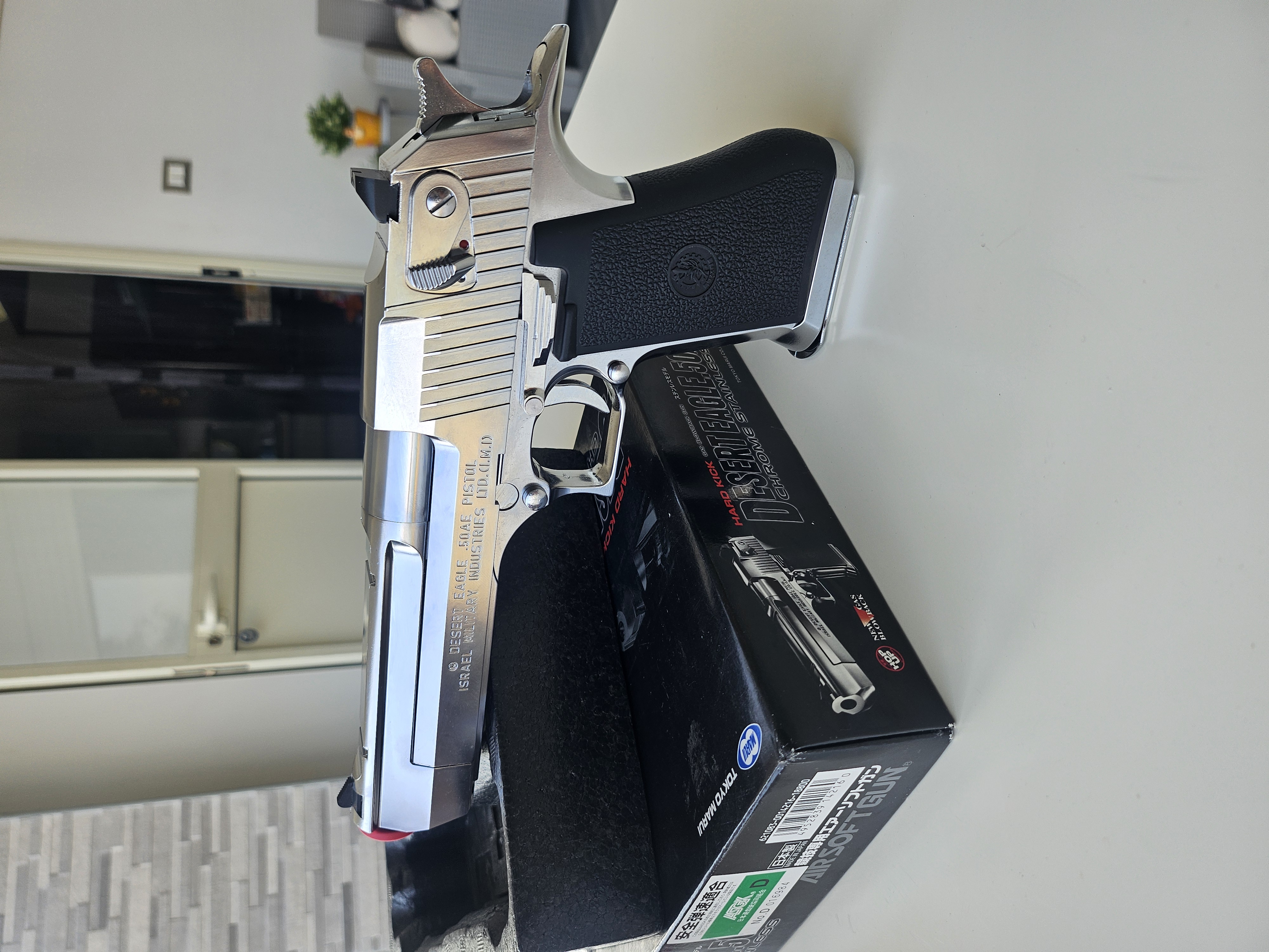 Desert Eagle Tokio Marui cromata, mi è stata regalata, in strepitose condizioni, usata pochissimo e mai uscita, compresa bomboletta gas ancora utilizzabile per qualche ricarica, un pacco di proiettili praticamente pieno.