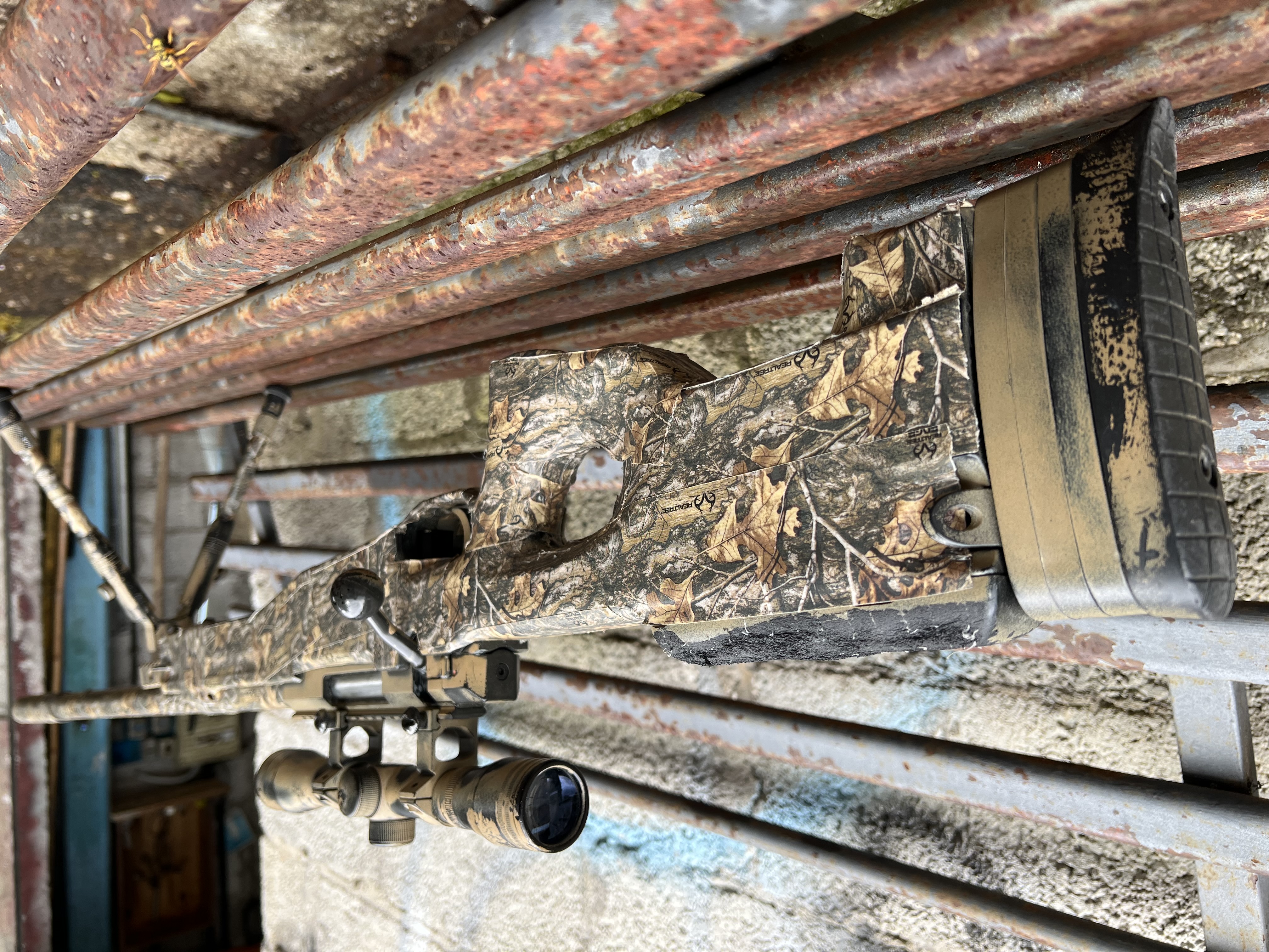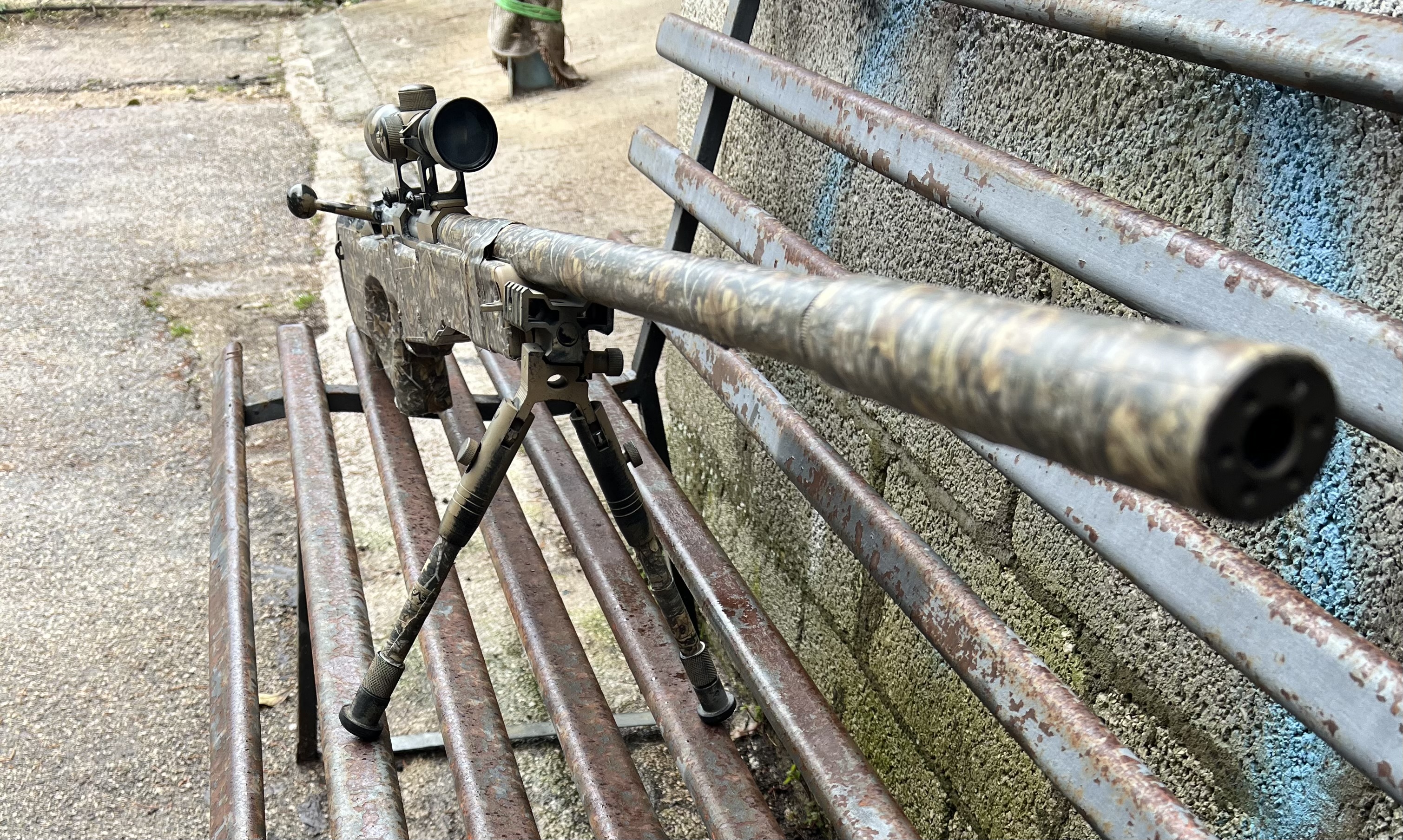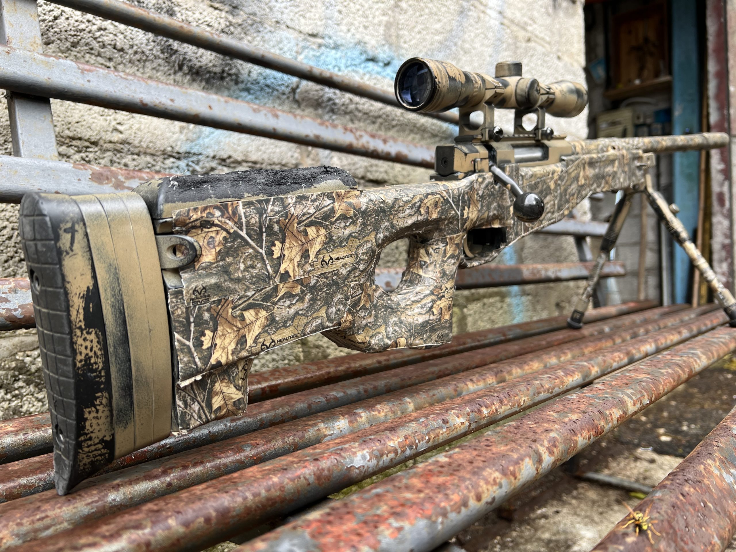 Questo fucile è una replica custom di alto livello basata sulla piattaforma L96 (Accuracy International), configurata per essere una vera e propria “bestia” da competizione o da collezione. Il fucile si presenta con una mimetica “bosco” (woodland/realtree) integrale, che copre non solo il corpo (calcio) ma anche l’ottica, la canna e il silenziatore. Questo garantisce un occultamento perfetto in ambienti boschivi fitti. Meccanica completamente in acciaio: Resistenza Estrema: Gruppo scatto, pistone, cilindro e molla sono progettati per reggere lo stress di una potenza elevata senza usurarsi o spezzarsi.